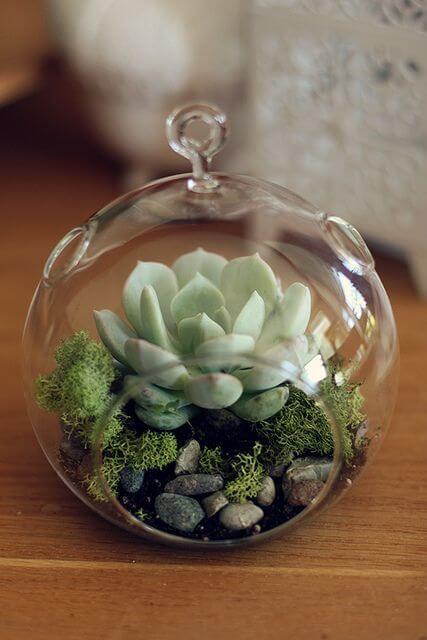 Glass terrariums filled with succulents create stunning mini gardens that feel like tiny worlds. Layer sand, pebbles, and well-draining soil for visual interest. Succulents thrive in these conditions and require little watering.