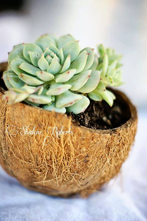 Coconut shells create eco-friendly planters that add tropical charm to your desk. Fill the shell with soil and choose small succulents or cacti. The natural curve of the shell highlights the plants beautifully.