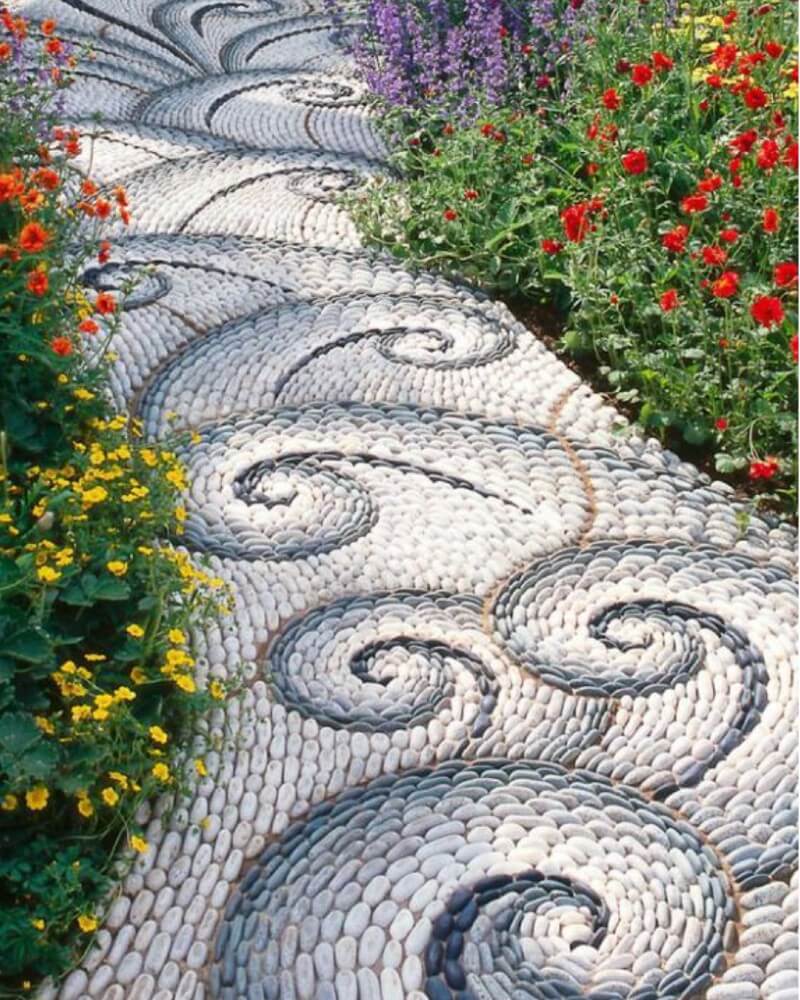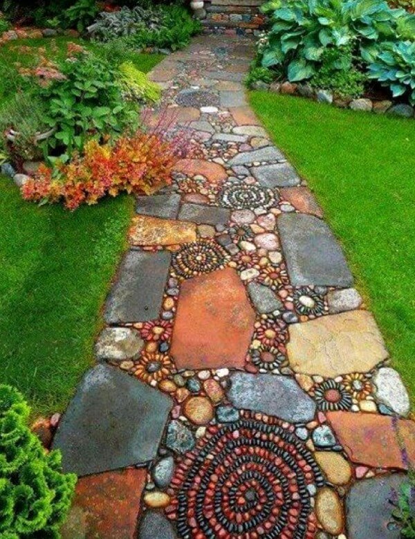 #12 Colorful Painted Stone Mosaic Garden Path