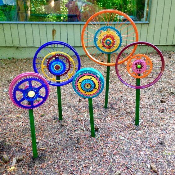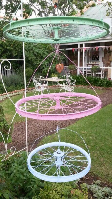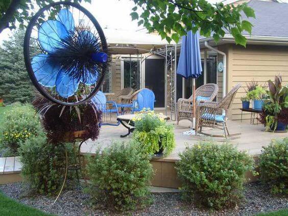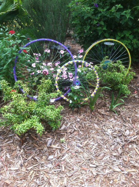 Your old wheels are normally thrown out or at the very least end up sitting around in the garage or yard collecting dust, making your yard look cluttered, try making these ideas wonderful ways instead. They not only can be repurposed to protect your environment but also give you great exterior decoration. Recycling has never been easier – just see for yourself with these ideas below!