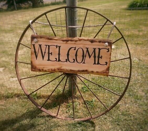 #5 A Recycled Wheel Idea with Welcome Sign