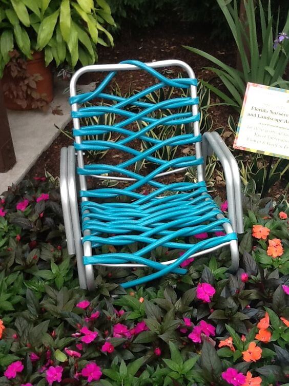 #10 Upcycled Lawn Chair Made From An Old Chair And A Garden Hose