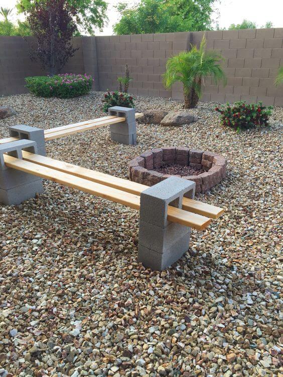 Simple, practical, and cost-friendly, this cinder block bench is perfect for gathering around a fire pit. By stacking blocks in pairs and sliding wooden planks through the openings, you instantly create a sturdy seating spot.