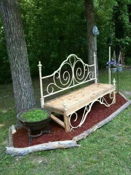#1 A Garden Seat Made Out Of A Metal Bed Frame and Recycled Wood