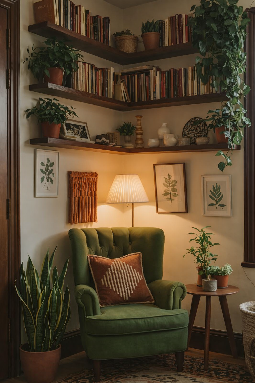 Cozy Reading Nook With Earthy Green Tones