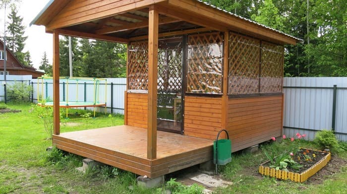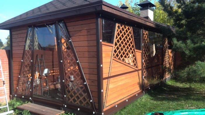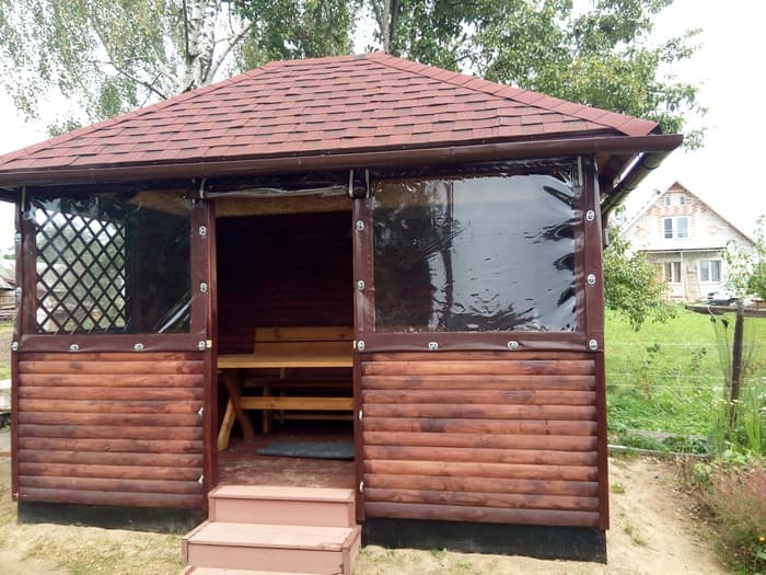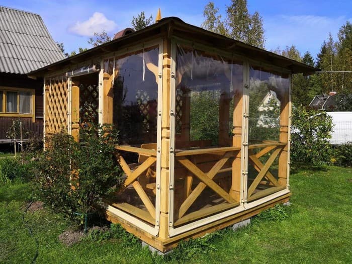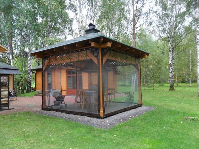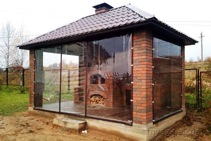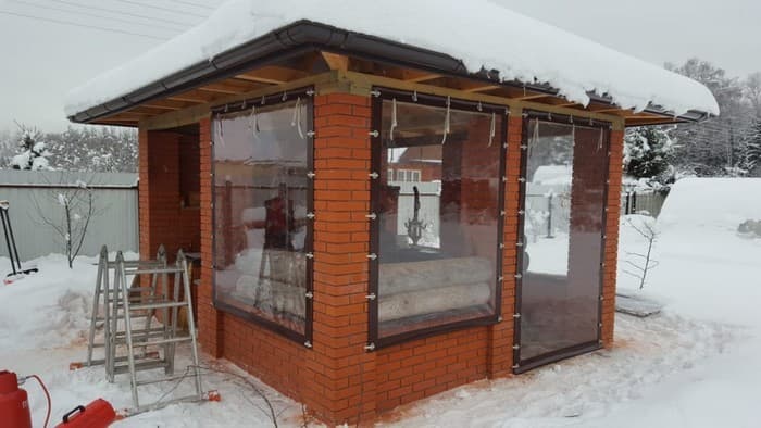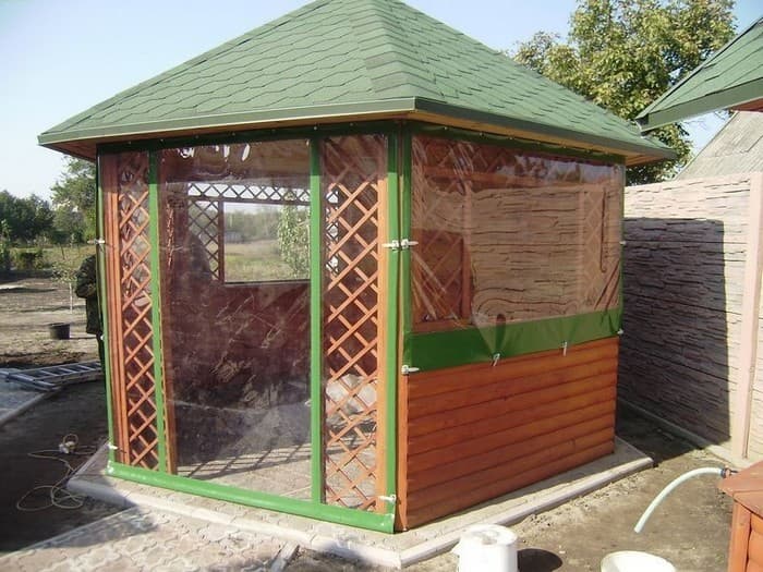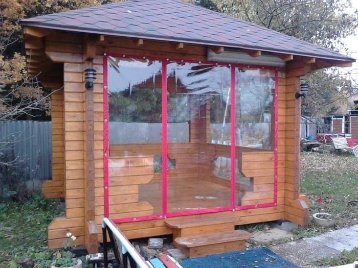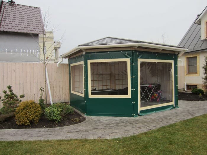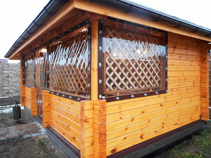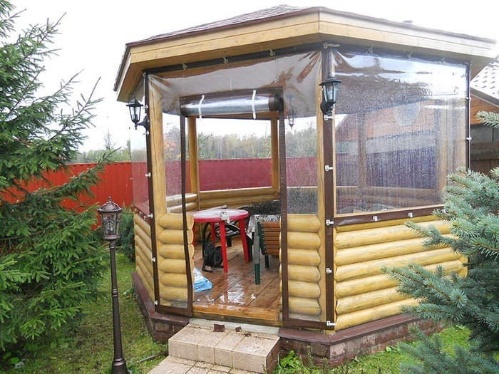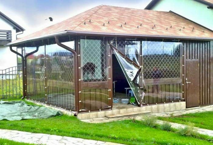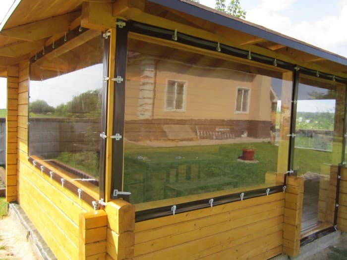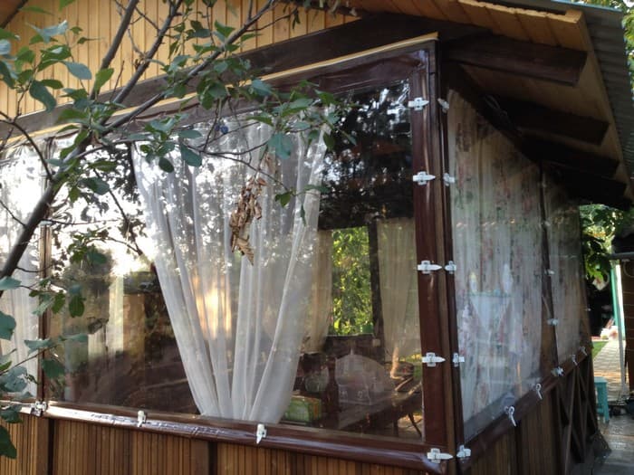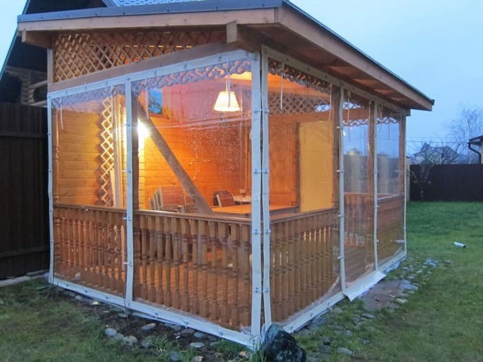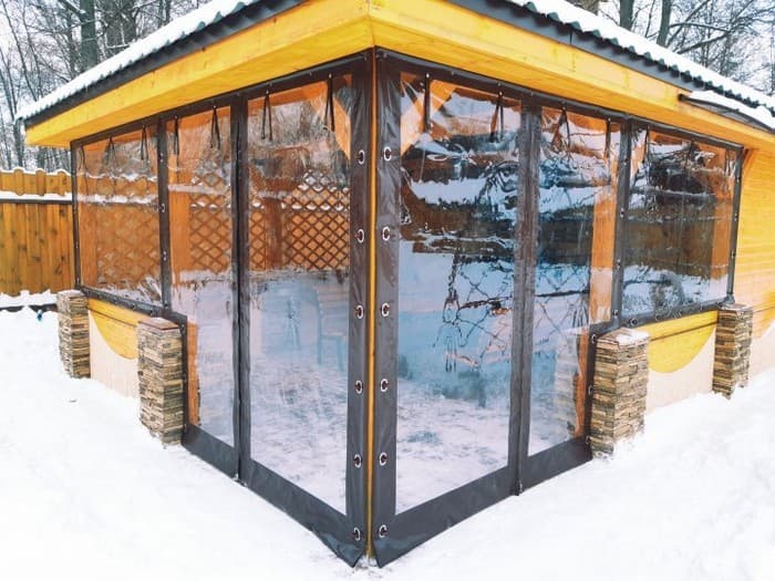 Fenêtres souples – une bonne alternative au verre et au plastique. Ils ne gâchent pas l’apparence du gazebo ou de la véranda, ils sont faciles à installer et à retirer, ne nécessitent pas de soins et d’attention particuliers et sont faciles à réparer. Ils vous protégeront de la poussière, du vent froid, des feuilles, de la neige, de la pluie et des insectes. De telles fenêtres sont capables de rendre les loisirs de plein air confortables et de ne pas transformer un belvédère confortable en l’air en une pièce fermée, comme c’est le cas avec le vitrage. Grâce à eux, votre repos sous le gazebo ou sur la terrasse sera confortable à tout moment de l’année, même en hiver.