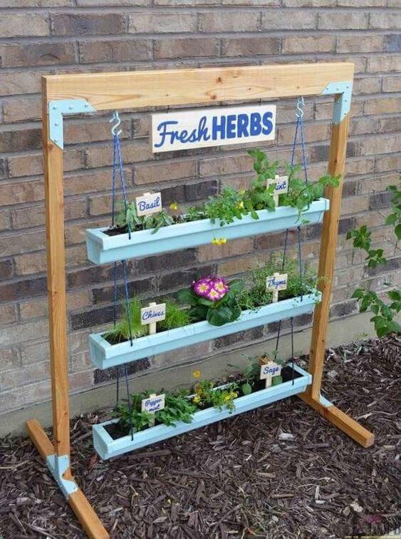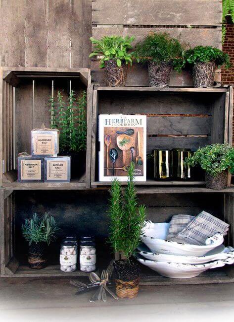 You can create a hanging shelf just for herbs. Use wooden planks or crates attached with rope or chain. Hang it near your kitchen window or patio for easy access.