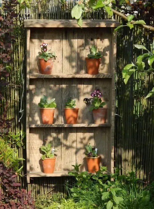 Repurposing an old pallet into a shelf is one of the easiest and most budget-friendly projects. You can stand the pallet upright, secure it to a wall, and slide in small flower pots or storage boxes.