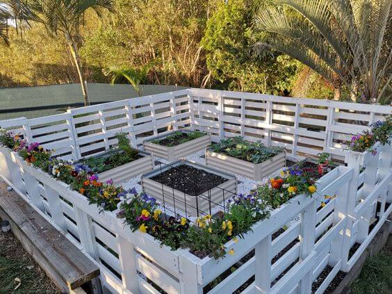 #14 Stunning White Painted Pallet Fence – Recycling Flower Planters