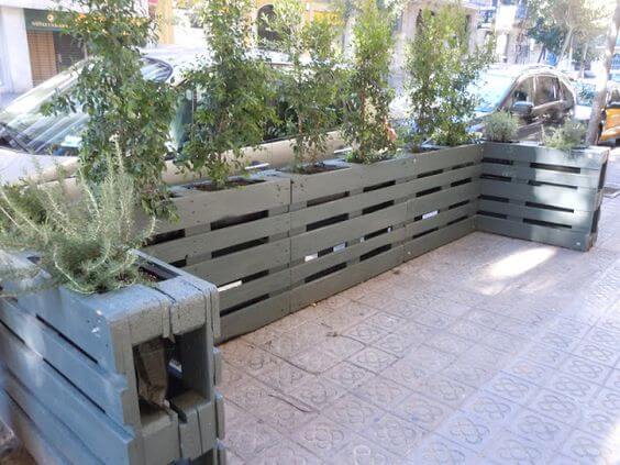This unique pallet fence is sturdy enough to support small trees growing through its structure. By leaving space for pots or planting directly at the base, you can let young trees flourish. The design provides privacy and greenery at the same time.