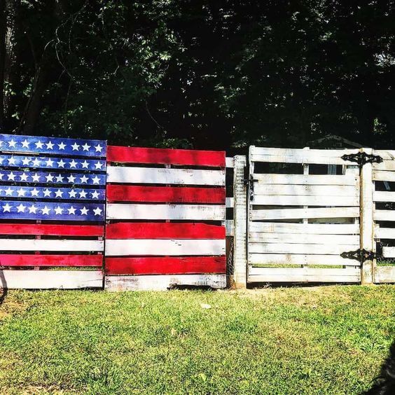 Transforming pallets into an American flag fence is a bold and patriotic project. The red, white, and blue stripes make a strong statement while celebrating creativity.