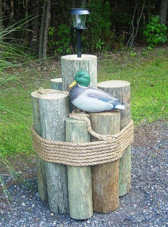 Step 1: Space your wooden posts evenly along your garden path or pond perimeter and hammer them into the soil securely.