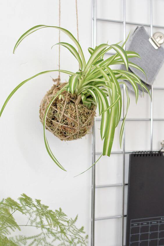 Kokedama is a Japanese root-wrapping technique that eliminates the need for pots, perfect for displaying spider plants in small spaces.