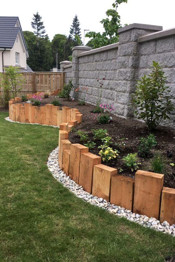 Simple wooden planks can be cut and installed to form a clean, functional border. Paint or stain them to match other wooden elements in your yard. For added charm, cut the tops into decorative shapes like points or curves.