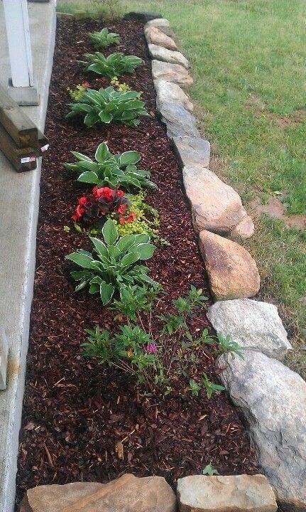 Collecting stones of similar size will make the edge look neat, while mixing larger and smaller rocks gives it a rustic appeal. Lay them tightly together to prevent weeds from creeping through.