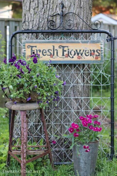 Bring a little market charm into your yard with a “Flower Market” sign. Use a wooden board and stencil the words in bold letters.
