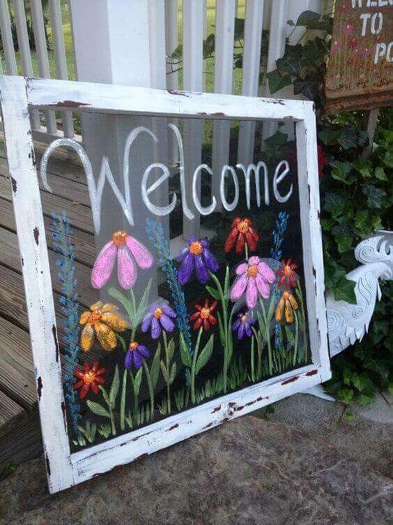 Repurpose an old window screen into a charming sign. Paint words like “Welcome” or “Garden Life” across the mesh. Use bold, bright colors to stand out.