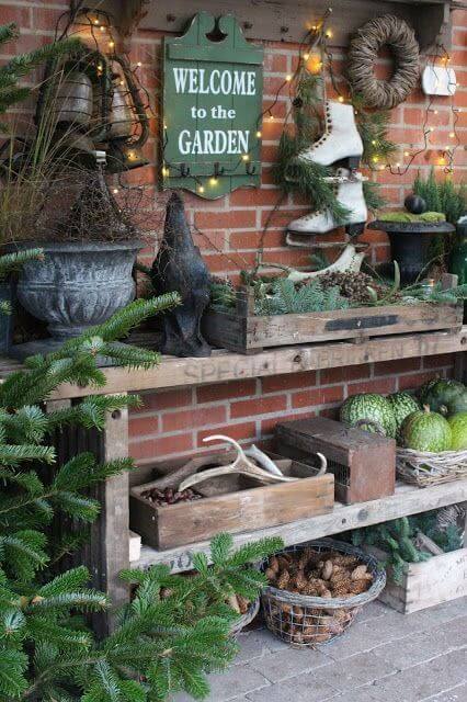 Combine a sign with a birdhouse for a functional decoration. Attach a small wooden board with words like “Welcome Birds” below the birdhouse.
