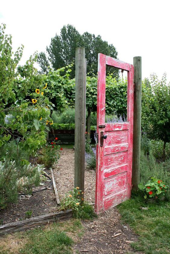 Old doors can also be used to build into the garden fence. Whatever you choose, you’ll bring a sense of rustic charm to your outdoor spaces.