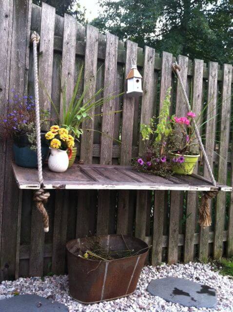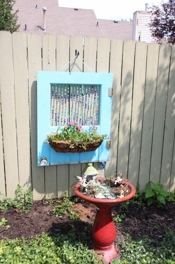 One of the simplest ways to use an old door is to lean it against your fence or wall. Then, you can hang planters from the door for an extra touch of blooming freshness in the garden. Or you can repurpose old doors with creativity including making them into privacy screens themselves.