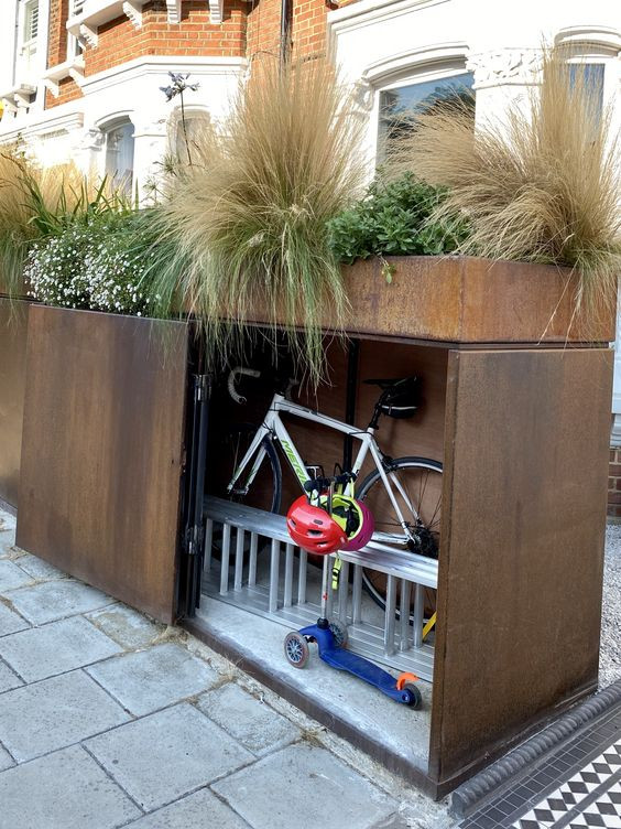#4. A Bike Storage Under A High Planter Bed