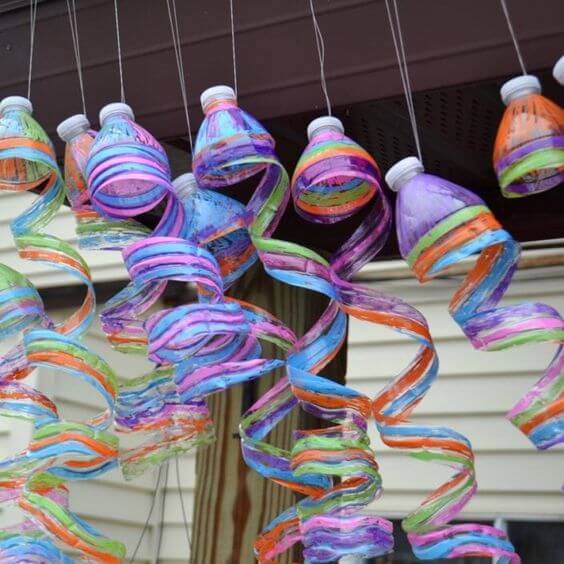 The wind chime version is a delightful project that repurposes used plastic bottles into musical and decorative hanging ornaments. To create these wind chimes, plastic bottles are typically cut into various shapes, such as tubes or bells, and then strung together on strings or wires.