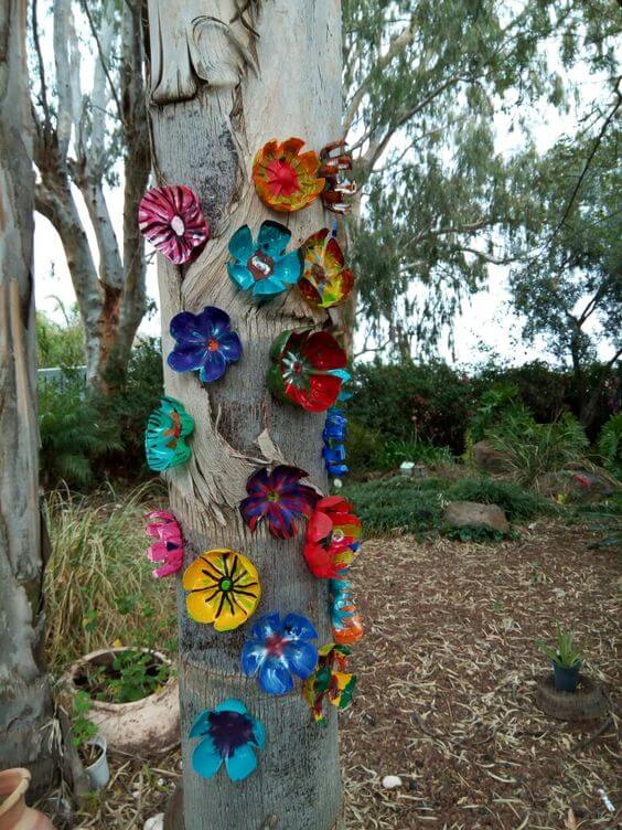 When arranged on a tree, these upcycled bottle flowers create a stunning and whimsical display, adding a touch of art and color to your outdoor space. This imaginative project not only showcases your artistic skills but also encourages recycling and environmental responsibility by repurposing plastic waste into beautiful outdoor decor.
