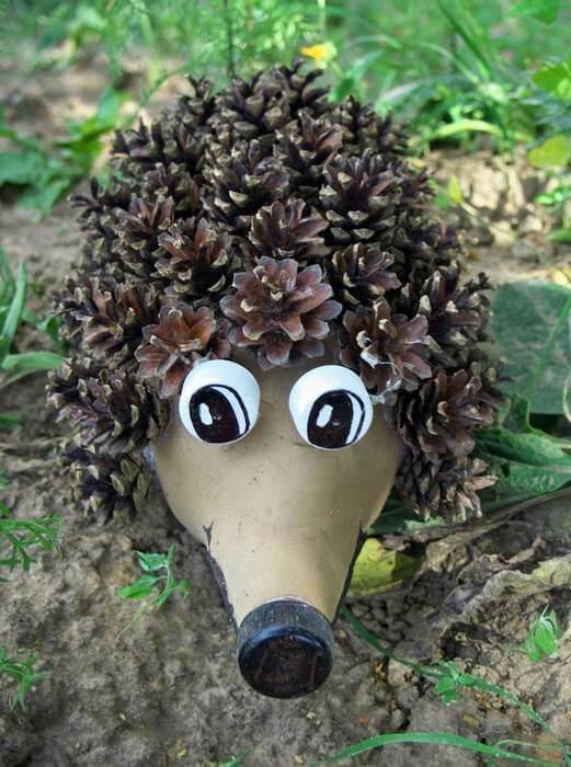 This adorable hedgehog is typically crafted by reshaping a plastic bottle to form the hedgehog’s body, with pinecones used as spiky quills. The addition of eyes, a nose, and legs completes the charming hedgehog appearance.