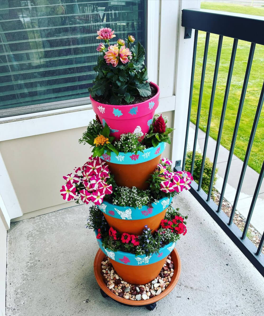 You will adore it! A stacked pot-tiered planter like this one is a fantastic technique to grow vertically in addition to looking gorgeous! You can grow more plants and it takes up less room! A tiered planter is an excellent project to begin vertical gardening which is ideal for the deck or patio.