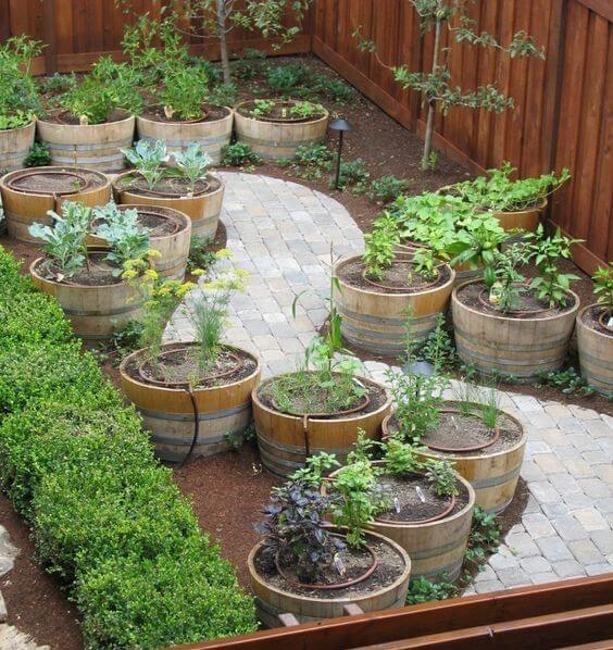 You can use them to grow herbs, flowers, or vegetables, keeping your garden neat and well-organized. To prepare them, cut barrels in half, drill a few drainage holes, and fill them with rich potting soil.