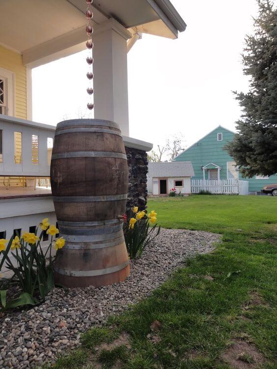 You can paint or stain the wood to match your home’s exterior. It’s a sustainable, charming way to make the most of nature’s rainfall while enhancing your garden’s look.