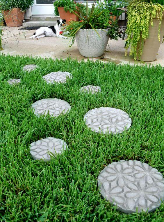 Stepping stones help guide the way while adding a touch of character to your lawn or garden path. With concrete, you can mold your own in whatever shape or size fits your space.