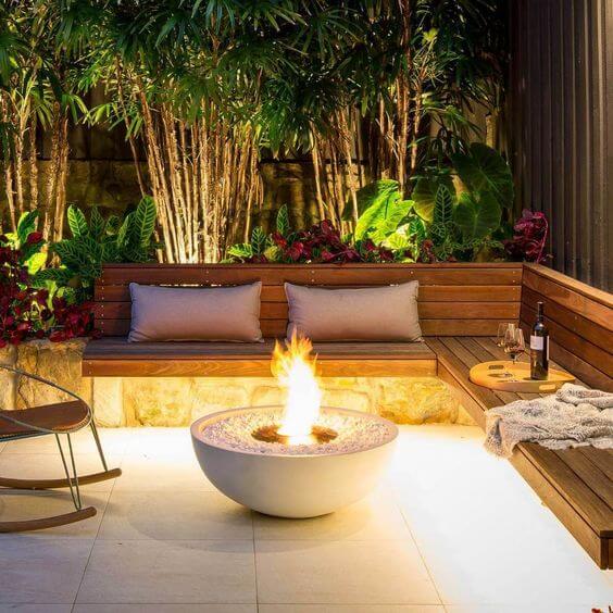 With soft cushions, bamboo in the background, and a built-in fire feature just steps away, it’s the perfect spot for unwinding after a long day.