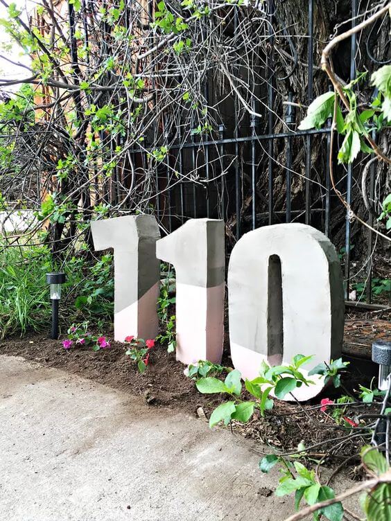 You can mold the numbers yourself or embed metal numerals into a custom concrete slab. Place it near your entrance or mount it on a wooden base for a bit of contrast.