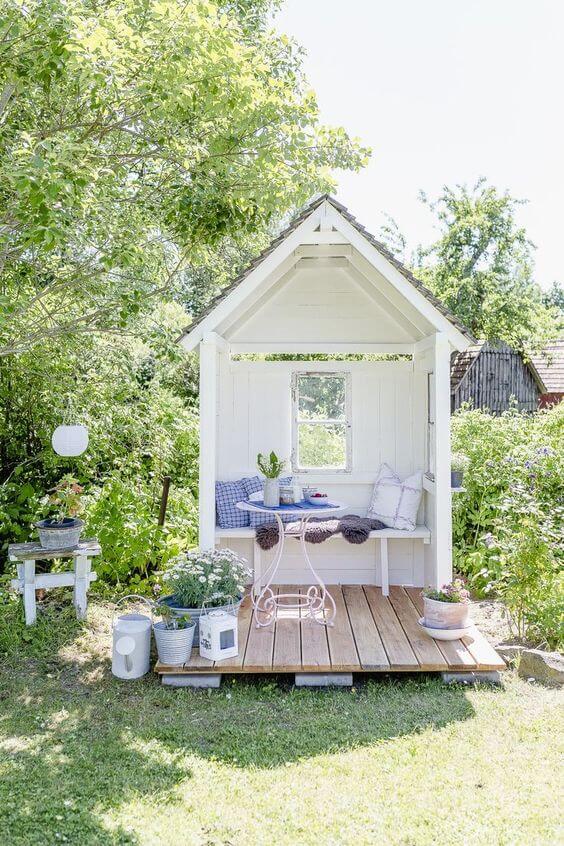You can use it as a potting shed, craft space, or simply as a quiet corner to enjoy your morning coffee surrounded by greenery. To recreate this look, start with a small wooden shed and paint it white to emphasize the light and open feel.