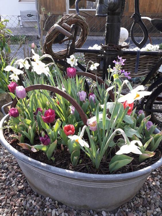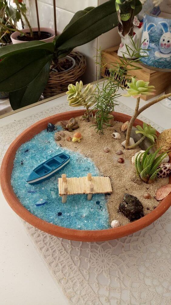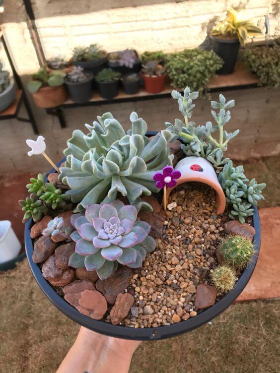 Select whatever you love, maybe flowers, ornamental plants, succulents, rocks, pebbles, and more, then grow or design them into your old pots. Check out 20 Mini Landscaping Ideas In a Pot That You Can Make Easily here!