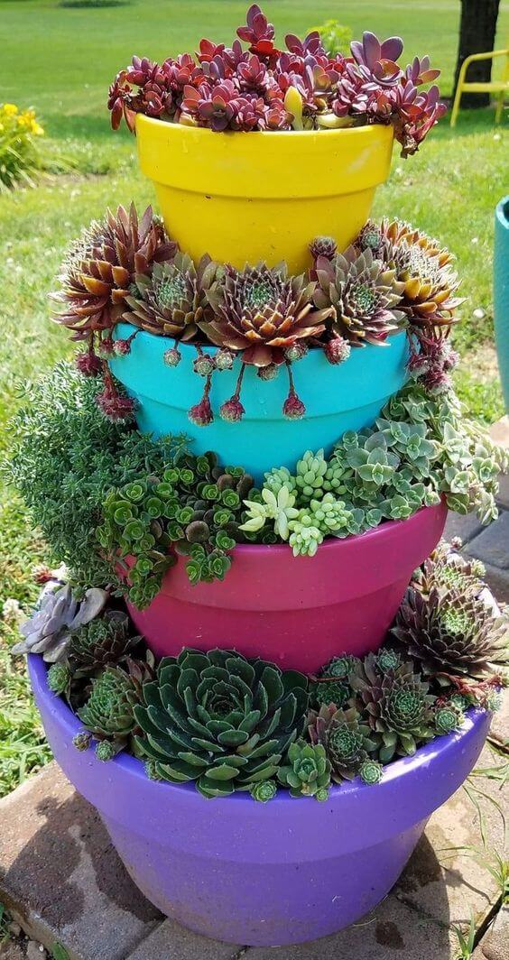 Creation is unlimited, and planting will never be boring with these ideas. By recycling unused pots, you will not have to spend your money on buying plant pots and will have garden decorations instead of throwing them out.