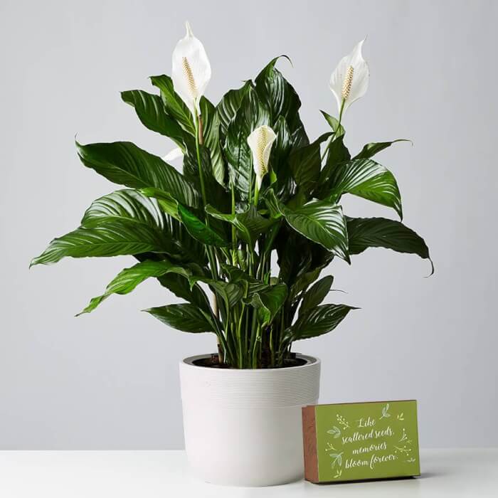 Peace Lily is an elegant option that produces striking white blooms along with glossy green leaves. It enjoys evenly moist soil and occasional misting to boost humidity.