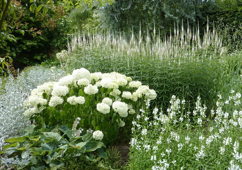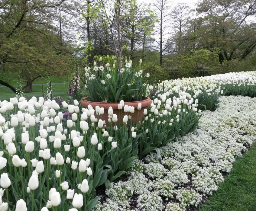 Vous pouvez planter des fleurs dans une bande qui ressemblera à une vague blanche la nuit, ou vous pouvez utiliser des pots de fleurs de couleur foncée. Une seule plantation ne convient pas: de telles plantes seront simplement perdues, bien qu’elles soient blanches. Il est préférable de les collecter dans de petites “îles”.