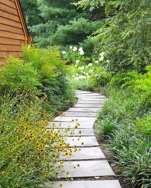 #7. Stone Path with Ornamental Grasses for Two Sides