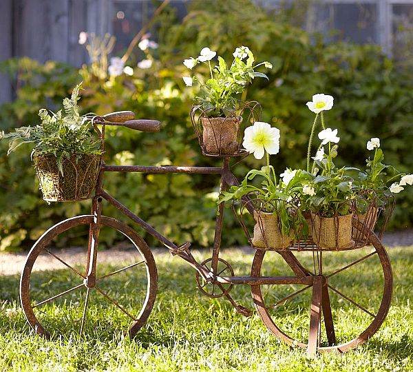 Place potted plants or flowers in a bicycle basket or attach them to the frame for an eye-catching display.