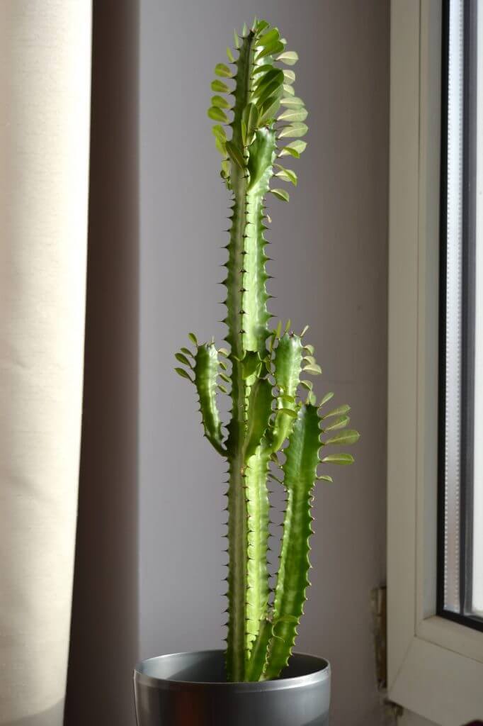 Set it near a south-facing window for best results and let the soil dry between waterings. Use gloves when handling it has a milky sap that can irritate the skin. For dramatic height and a sculptural vibe, it’s a real standout.