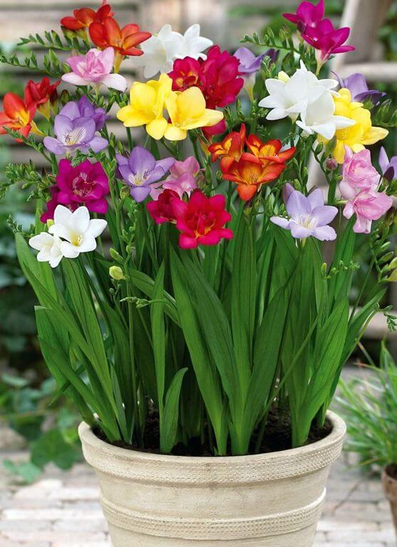 Freesias are loved for their trumpet-shaped flowers and fresh, citrus-like fragrance. They grow easily from bulbs and bloom indoors in bright light. Plant several bulbs in one pot for a fuller display.
