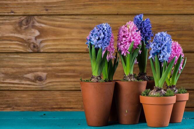 Hyacinths are famous for their powerful, sweet perfume that can fill an entire room. Their tightly packed blooms come in shades of blue, pink, white, and purple.