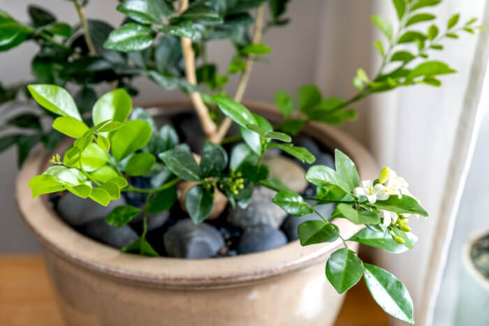 Keep the soil moist but not waterlogged. Their glossy leaves and small fruits add beauty to your décor. During blooming season, the scent alone makes them worth growing.