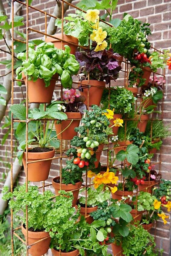A hanging garden can save floor space, add visual interest and make use of recycled materials. You can grow various types of plants in a hanging garden, such as flowers, herbs, vegetables, or succulents.