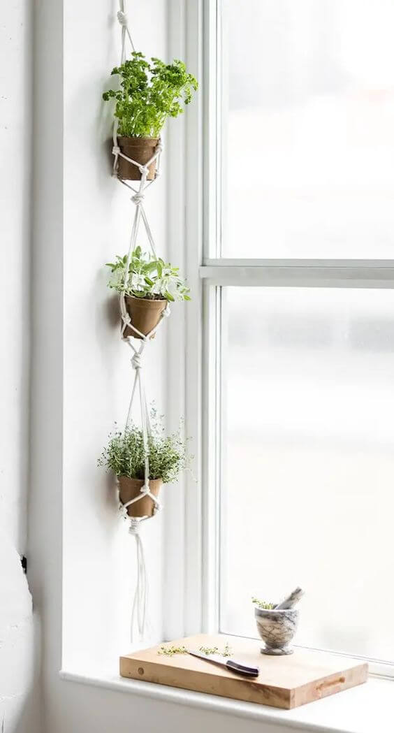 #9 Macrame Hanging Herb Garden For Window