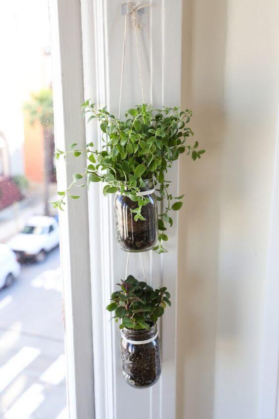 #20 Hanging Mason Jar Herb Garden With Rope
