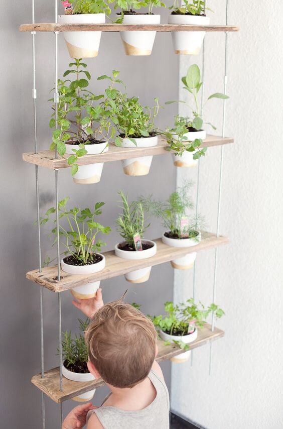 #11 Hanging Shelves Herb Garden With Pretty Clay Pot