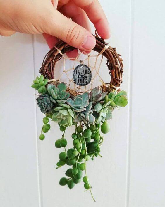 #16 Lovely Tiny Hanging Wreath Succulent Planter